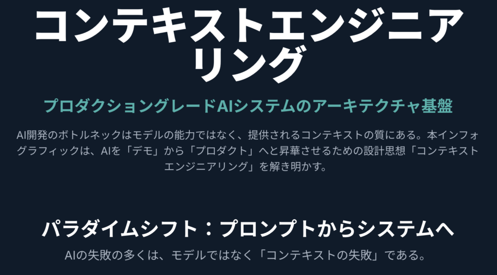 この比較から明らかなように、コンテキストエンジニアリングへの移行は、AI開発が単なる「試行錯誤」から、予測可能性と信頼性を重視する体系的な「システム設計」へと進化していることを示している。