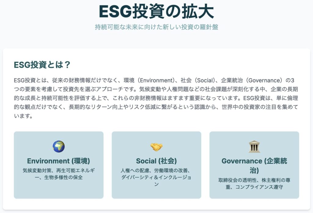 ESG投資の全貌:定義、市場動向、実践的アプローチと将来展望