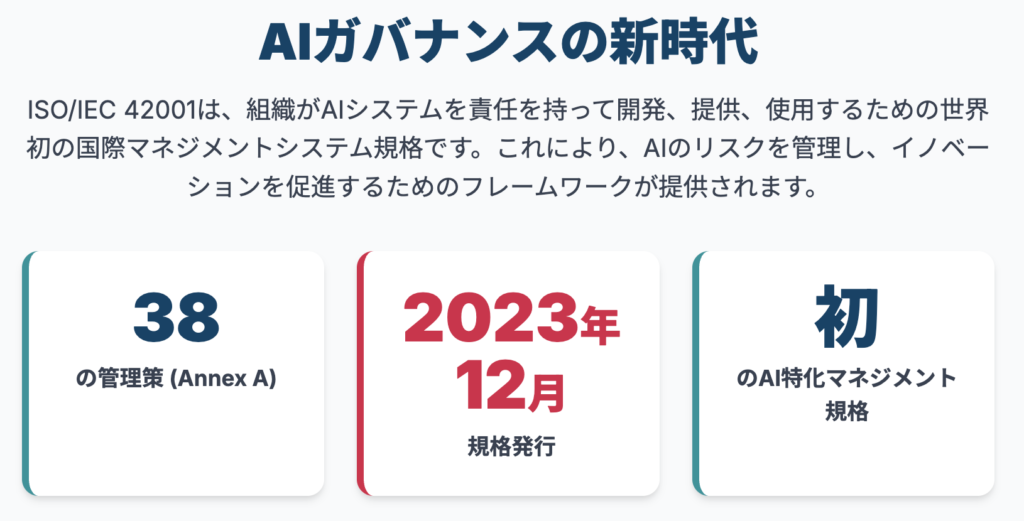 - 【AI時代の新常識】ISO/IEC 42001とは?5分でわかるAIとISOマネジメントシステム – ISO NEXT https://cert-next.com/column/6475/