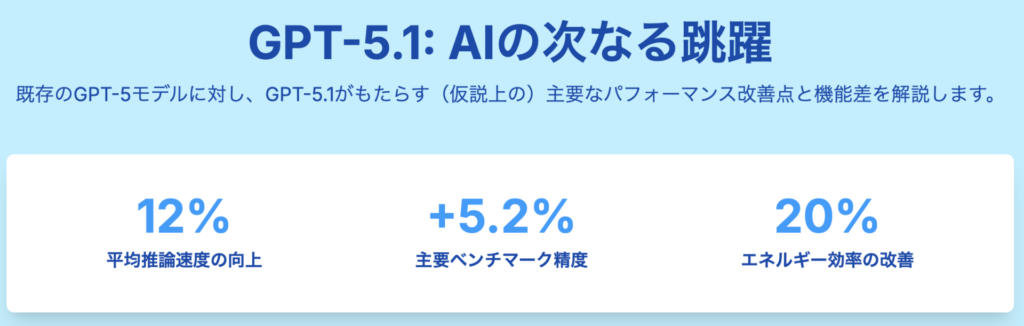 以下の表は、GPT-5世代の性能とGPT-5.1での改善点をまとめたものです。