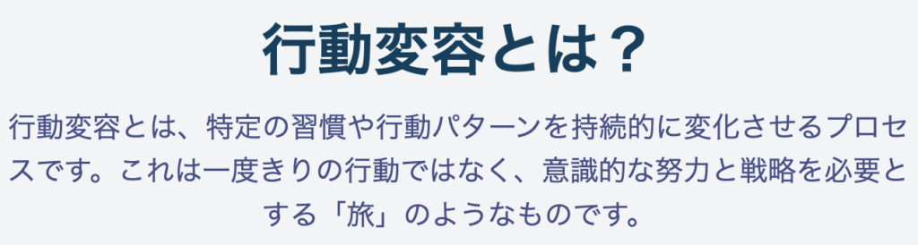 - 行動変容とは? 部下の意識・行動を変える効果的なアプローチについて解説 https://www.recruit-ms.co.jp/glossary/dtl/0000000276/