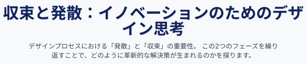 - したがって、実際のイノベーションやデザイン思考のプロセスは、(1) 発散フェーズ(問題の定義やアイデアの可能性を広げる)と、(2) 収束フェーズ(最も有望なアイデアを選択・定義し、実行可能な解へと絞り込む)というサイクルを繰り返すことで進行する。