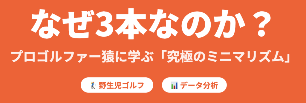 ユーザーの問いにある「3本」という数字については、作品内での描写と、現実的なミニマリズムの解釈が交錯する点について整理が必要である。厳密には、猿は「ドライバー1本」でプレーするスタイルが最も象徴的であるが、ゴルフの基本要素である「飛ばす(ウッド)」「寄せる(アイアン)」「入れる(パター)」の三要素を概念的に統合していると解釈できる。