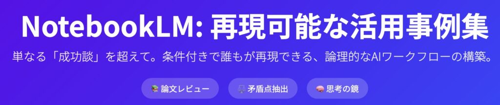本報告書は、NotebookLMを単なる「要約ツール」としてではなく、高度な**「推論エンジン(Reasoning Engine)」として定義し、その活用事例を体系化することを目的とする。特筆すべきは、本報告書が単なる成功事例の羅列ではなく、「条件付き再現性(Conditional Reproducibility)」**に焦点を当てている点である。AIの出力精度は、入力されるデータの質、プロンプトの構造、そしてユーザーの運用フローに強く依存する。どのような条件下であれば、NotebookLMは「再現可能」な成果物を生み出せるのか。そのメカニズムと具体的な運用法を、15,000字規模の詳細な分析を通じて明らかにする。