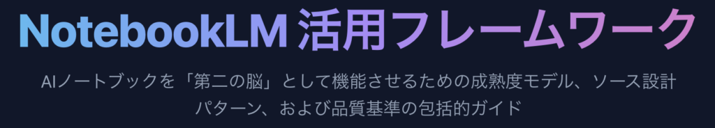 NotebookLMは、情報の「倉庫」から知識の「工場」への転換を可能にするツールです。しかし、その能力を引き出すためには、漫然と使うのではなく、明確な意図と構造を持った**「フレームワーク」**の適用が不可欠です。